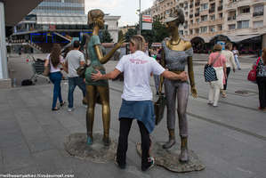 Скопье можно смело назвать городом уличной скульптуры, тут огромное количество разных творений, причём изображены не только исторические личности, но и просто простые люди. Я помню что видел примерно такое же в