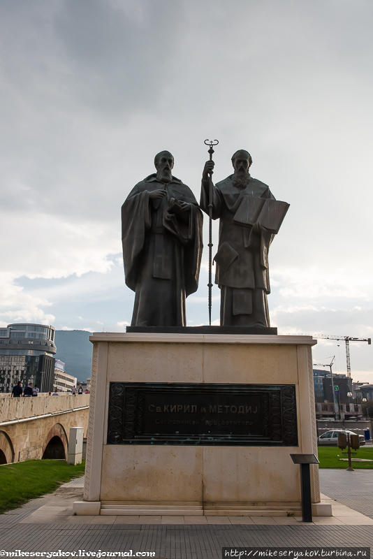 В Скопье, также как и Москве)) есть памятник Кириллу и Мефодию — создателям нашей славянской письменности, так что есть что-то общее между нашими столицами.