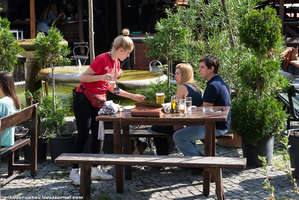 Несмотря на то, что Македония считается бедной страной, жизнь в барах и ресторанчиках старого города "кипит". У меня сложилось впечатление, что македонцы не очень "заморачиваются" работой, в будние дни все уличные кафе полны народу, кто-то просто пьет кофе, неспешно потягивая сигаретку, а кто-то и "напитки покрепче".