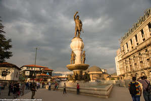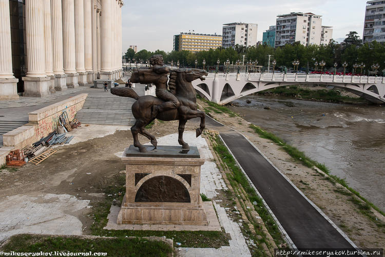 На площади Македония расположен главный памятник самому Великому из македонцев – Александру. Я только когда покинул Скопье обнаружил, что у меня не осталось ни одной приличной фотографии этой скульптуры, да и самой площади.((( Так что приходится довольствоваться, тем что есть.