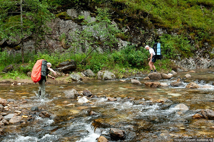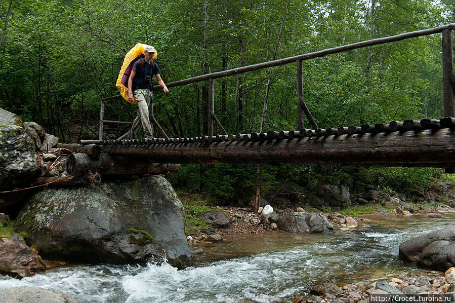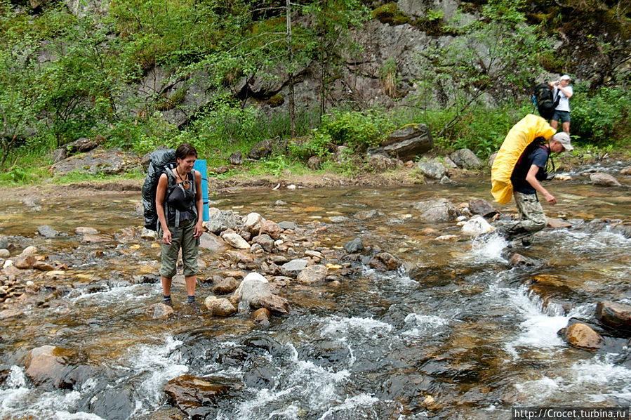Шёл дождь, мы переходили вброд реку, увидев, что девочка, звали её Кристина, отстаёт, я решил проявить галантность и поступить как джентльмен, будьоно не ладно. Я забрал у неё 6 кг еды. При своем весе рюкзака 25 кг, в него добавилось ещё 6 кг, моё больное колено от такого шести килограммового подарка так взвыло, что я призадумался малость над своим поступком. Конечно, в такой ситуации я мог идти только замыкающим. Это был хороший урок, понял, что больше никогда в жизни не буду в этой роли, это ужас. Приходя на место отдыха, замыкающий отдыхает всего 5-10 минут, в то время основная команда пока ждет, отдыхает уже 15-20 минут . Соответственно количество восстановленных сил было разным.