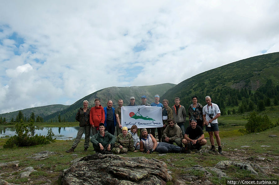 Сегодня мы идём под рюкзаками, наша первоочередная цель перевал Чёртовы ворота и Чёртово озеро, на этом же перевале. На перевал поднялись без проблем, здесь ещё ходят люди и поэтому много хороших троп. С перевала открывается красивый вид, озеро на перевале тоже впечатляет. Во время очередной групповушки, я повредил колено. Поставил фотоаппарат на камень, сдалал таймер и начал бежать к группе, чтобы успеть влезть в кадр, и вот в этот самый момент ударился коленом об камень. И это в самом начале похода! А ещё идти 16 дней!