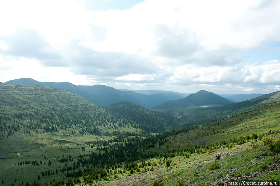 С перевала хорошо видно, какой маршрут нам предстоит пройти. Честно говоря, это выглядит страшно. Вроде нет особых препятствий, идёшь себе и идёшь, но вот эта монотонность и убивает. Постоянные спуски и подъёмы.