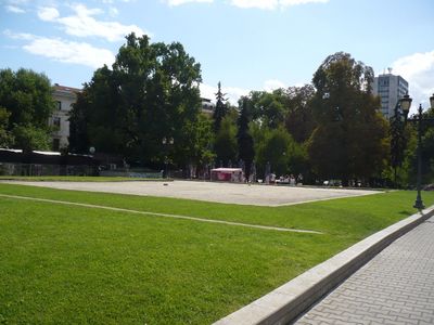 Выйдя на площадь Князя Александра I увидел большую проплешину между газонов в парке «Градска градина». Во время моего первого посещения Софии, в далеком 1985 году, тогда на этом месте стоял мавзолей Георгия Димитрова, памятник-усыпальница руководителю послевоенной Болгарии.