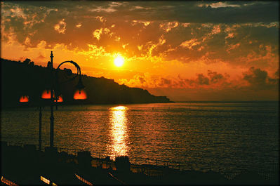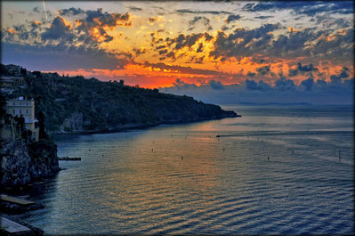 Приехав в Сорренто поселились в отеле на самом берегу моря, из окна которого открываются потрясающие виды. Вечером из окна любовались закатами над Тирренским морем, небо пылает всеми оттенками оранжевого, красного и золотого цветов.