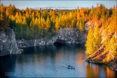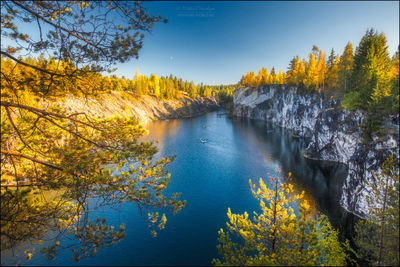 А главной достопримечательностью для посещения, выбрали мраморный каньон Рускеала где многие деревья уже окрасились в желтый цвет, которые очень красочно контрастировали с синим небом.