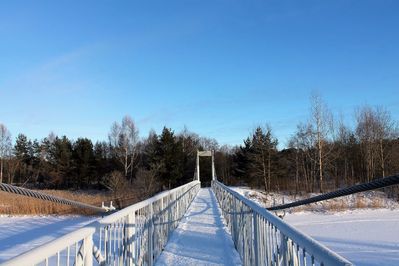 Вот уже более 50-ти лет мост исправно, несмотря на неофициальное название «Пьяный», служит жителям города, соединяя их напрямую через реку Коваши с местом отдыха – городским пляжем. Прежде надо было сделать большой крюк, чтобы добраться до места, отчего многие были вынуждены оставаться на речном берегу вдали от залива. Что до примет, связанных с «Пьяным» мостом, таких мне неизвестно. Правда, молодые пары навешивают на конструкции моста замки с собственными именами, ключики от которых выбрасывают в реку, полагая, что таким образом их судьбы будут крепко-накрепко связаны, но практика эта — не нова и что самое главное, не обладает волшебной силой. А мост от такого несанкционированного декора только страдает, нарушаются его физические свойства и внешний вид.