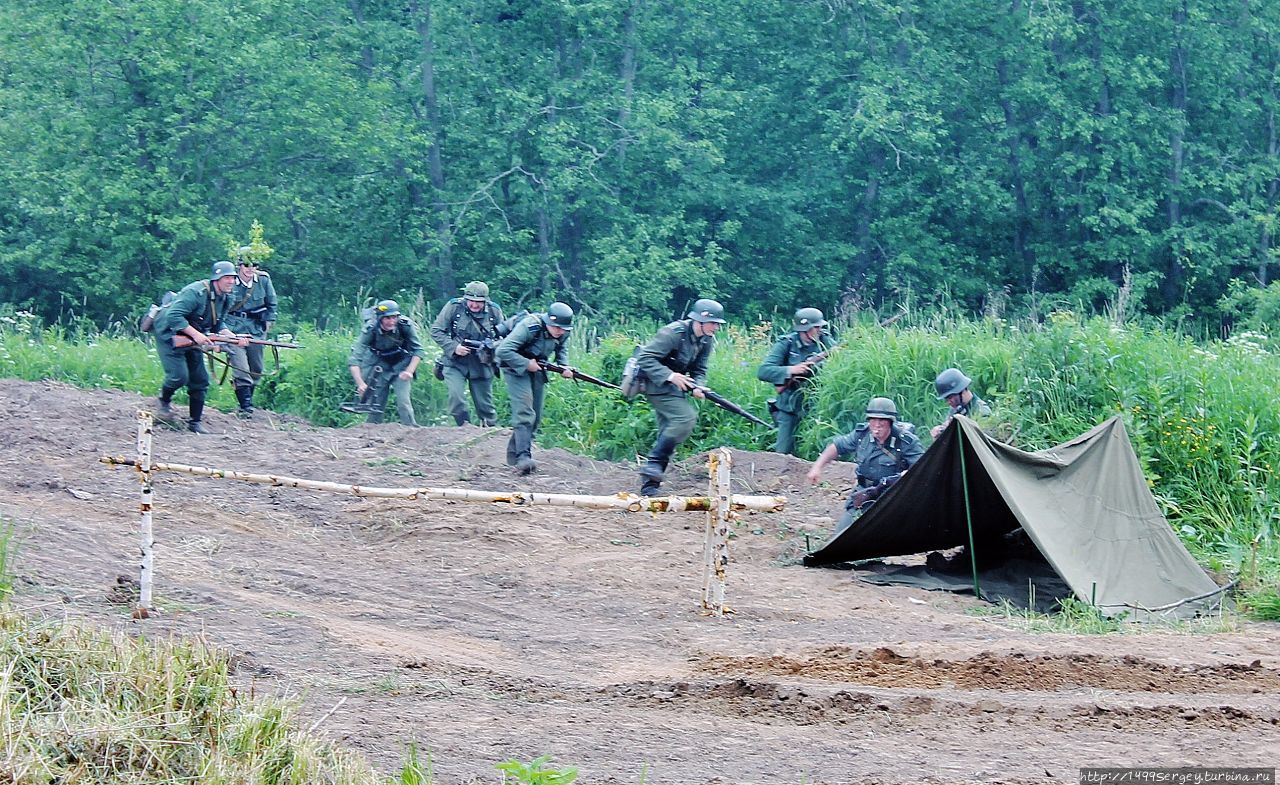 Спрашивается, для чего здесь упомянут данный эпизод? Ответ очень прост, порой всякого рода маскировка бывает очень полезна, особенно в армейской среде, а в нашем случае, говоря об исторической реконструкции «Бой за переправу», ею с успехом воспользуется немецкая сторона. Но прежде, пока бой ещё не начался, попробую разузнать коварные планы врага.