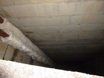Найти залаз в бетонную башню около 80 м высотой оказалось непросто, — несмотря на охрану, сталкеры довольно часто посещают этот объект, и все доступные входы оказались заваренными стальными листами. С трудом нам удалось найти небольшое отверстие между железными панелями, закрывающими вход в подвал. Кое-как по очереди протиснулись туда и оказались в полузатопленном подвальном помещении. По ряду коридоров подвала с трубами коммуникаций добрались до лестницы. Ее пролет уходил на головокружительную высоту.