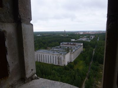 По непроверенным данным в ней собирались испытывать боевые лазеры в условиях, приближенных к условиям открытого космоса. Так, якобы, готовился ответ СССР на американскую программу "звездных войн". youtube.com/watch?v=IWQ4CrdQG… Из пустых оконных проемов открывались великолепные виды на кварталы Соснового Бора, Финский залив, корпуса и градирни ЛАЭС и специальную рельсовую дорогу, построенную на территории НИИ для испытаний оборудования и оптических систем для Аэрофлота.