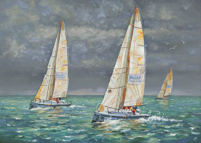 Пока готовил материал по регате, я по свежей памяти успел написать картину "Идущие к финишу"