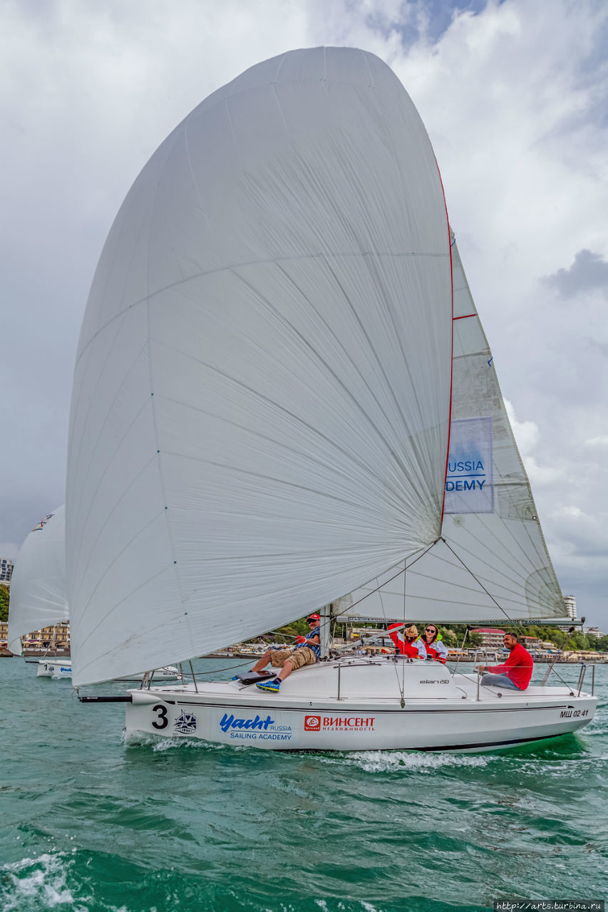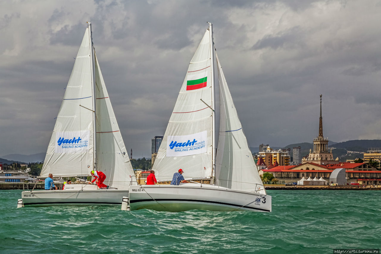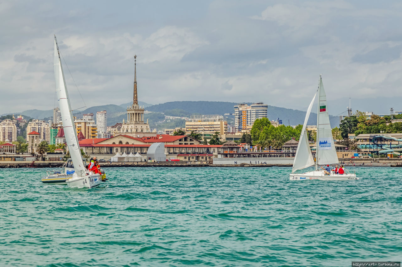 Все кто любит здоровый образ жизни, желающие могут в течение всего лета и до середины октября принять участие в этапах регаты, которая проходят по субботам в акватории морпорта Сочи.