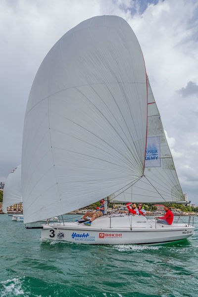До начала старта яхтсмены проверили надежность и скорость яхт, подняв передний надувной парус -"генакер"