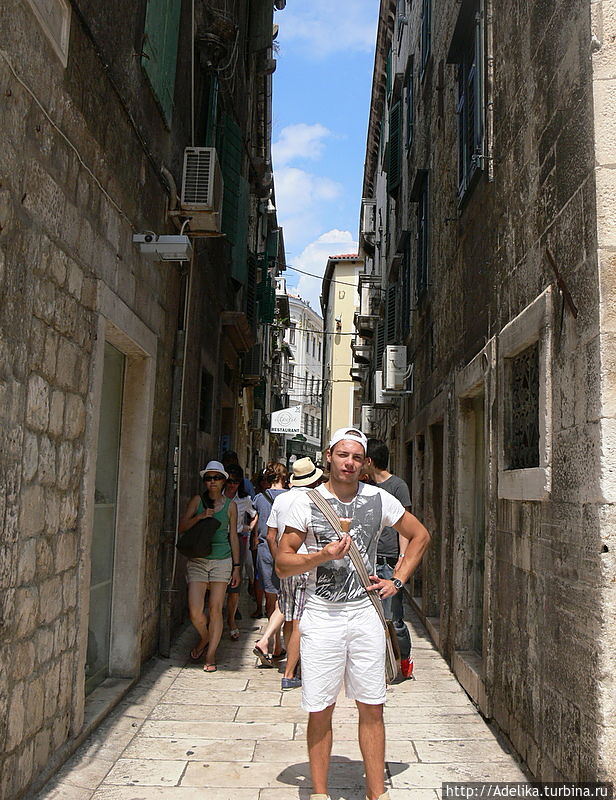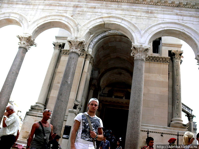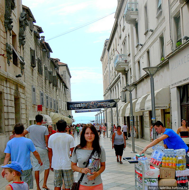 По приказу римского императора Диоклетиана в IV веке н.э. в Спалатуме построили огромный императорский дворец. В нем добровольно отказавшийся от власти император жил в уединении.В этой части старого города, где располагаются развалины дворца кипит жизнь. И я удивлялась этому, и представляла как каждый день кто-то выходит в магазин, покупает хлеб и рыбу на базаре , который там же располагается. Этот город пропитан колоритом, историей и чем-то древним.Тут,будто все забыли, что стены всех зданий древние, и просто живут,торгуют, развлекаются.