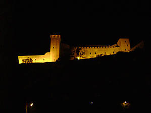 Наступала ночь, но город звал и манил. Неяркие силуэты зданий мерцали на чёрном небе. Покинув отель я пошел гулять по Сполето. Окунувшись в лабиринт узких улочек по которым не слонялась толпа туристов я отдался ощущению города. Улочки то влекли меня вверх, то спускали вниз. Я даже не пытался запомнить дорогу, так как был внутренне уверен, что таинственный дух города обязательно приведет меня к центральной площади города — площади перед кафедральным собором Успения Богородицы.