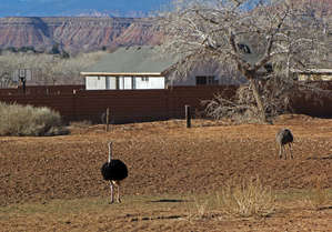 В том районе с населенными пунктами не густо. Оно и ясно, земли, что для хозяйства не супер, да и золотишка в них тоже нет. Но есть один, стабильный и надежный источник дохода — мы, туристы. Вот благодаря этому, а скорее, и ради этого и существует городок Springdale. Основанный в 1862 году мормонами как фермерская коммуна, в наше время городок полностью переориентировался для обслуживания туристов. Удачно расположенный, а буквально за последним двором начинается парк Зион, городок похоже каждый свой дом предлагает для размещения путешественников. Где-то это обычный B&B, где-то гостиничку подшаманили, где-то ресторанчик с магазинчиком. А на въезде в городок мы даже ферму со страусами обнаружили... Главное, все 529 человек населения (по данным за 2010 год, а мы там были именно в том году) очень рады видеть нас а Вами, или таких же, как мы:))