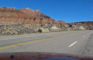 Вот мы промчались по трассе Интерстейт-15, свернули на восток на дорогу 200, потом берем не много на северо-восток на совсем уж местную дорогу 9 ... Мы бродячие..., мы в дороге день за днем. Юта с севера на юг Уже километров через десяток картинка в лобовом стекле меняется, впереди появляются характерные горы