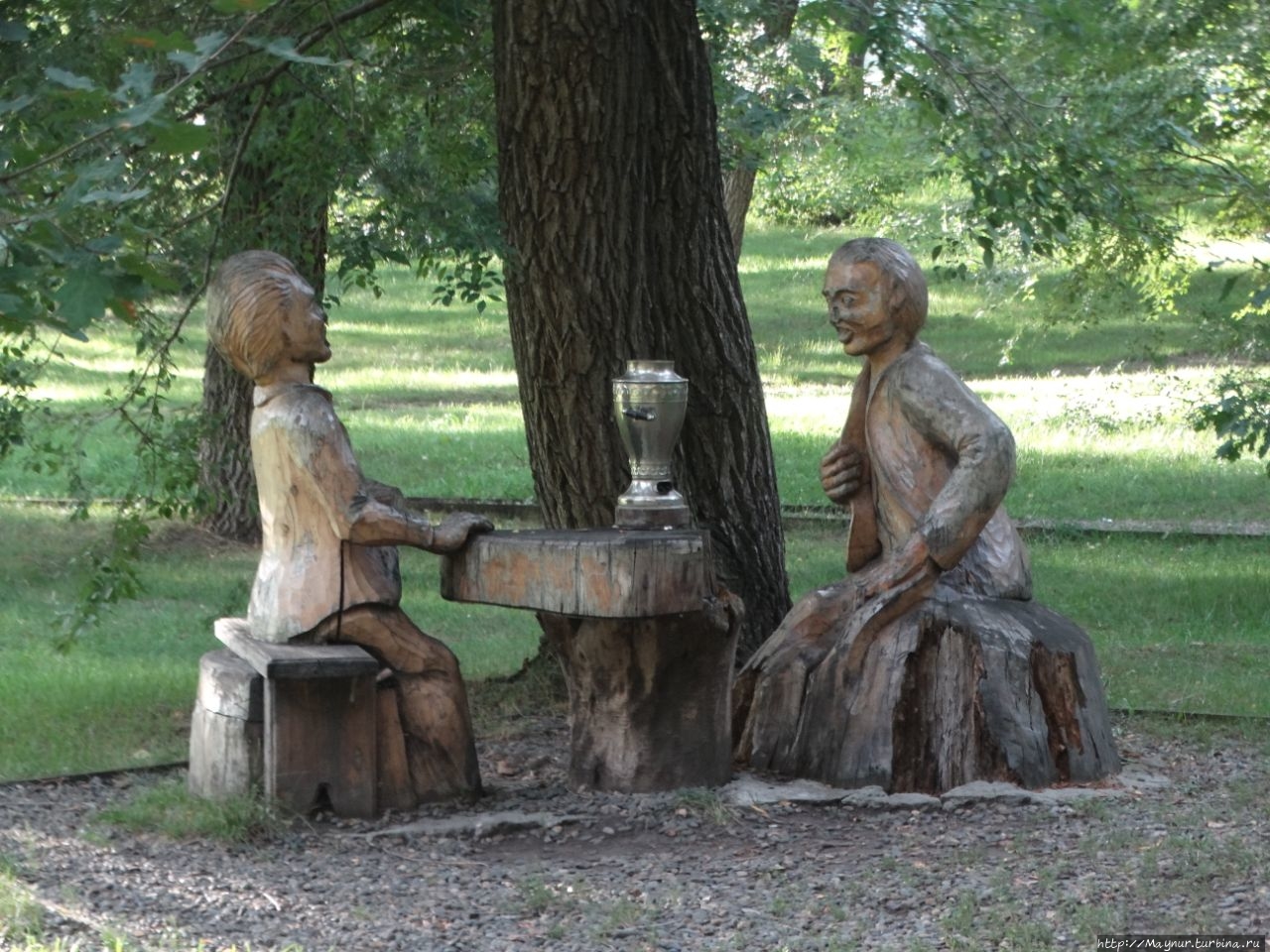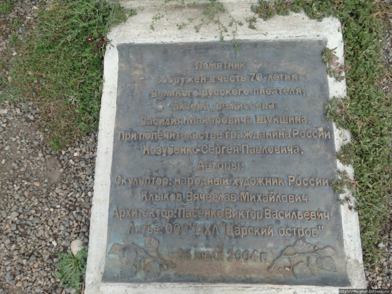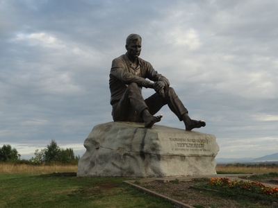 , школа, в которой учился и проработал какое -то время директором, и которая сегодня является музеем, носящим его имя.. Здесь же рядом находится парк деревянных скульптур "Чудики", прообразы героев из его рассказов.Поднялись на гору Пикет. Место не случайное. Здесь В.Шукшин любил проводить время в раздумьях и кто знает, может здесь зарождались образы героев его произведений. Была задумка установить памятник в деревне, возле чудиков, но хорошо, что передумали. Смотрится он только на возвышенности, на размашистом просторе.