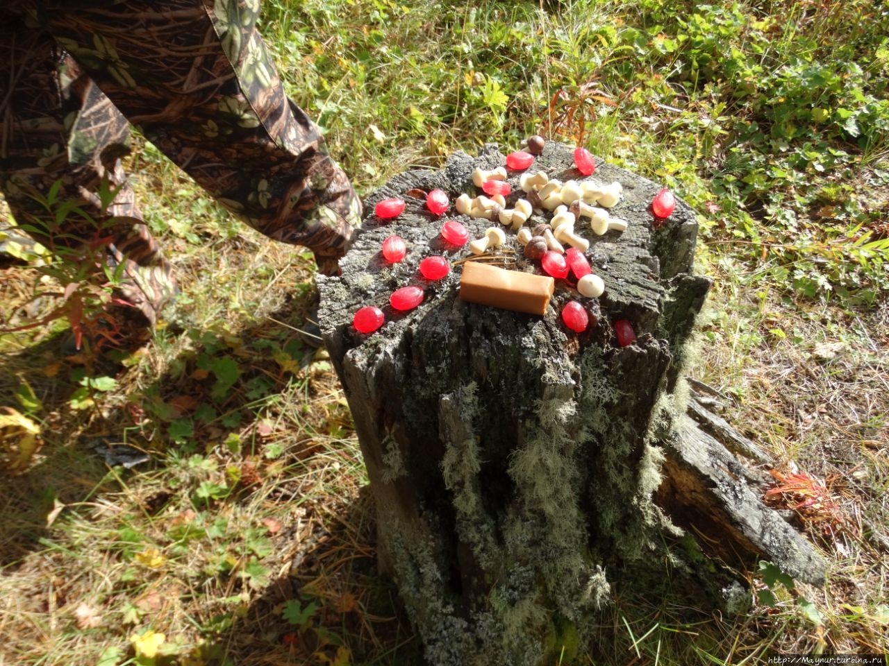 земля вокруг пня полита молоком. Оказалось, что духи очень любят молоко.Все. Как отрезало. Больше мы ничего не теряли и все путешествие прошло как по маслу.