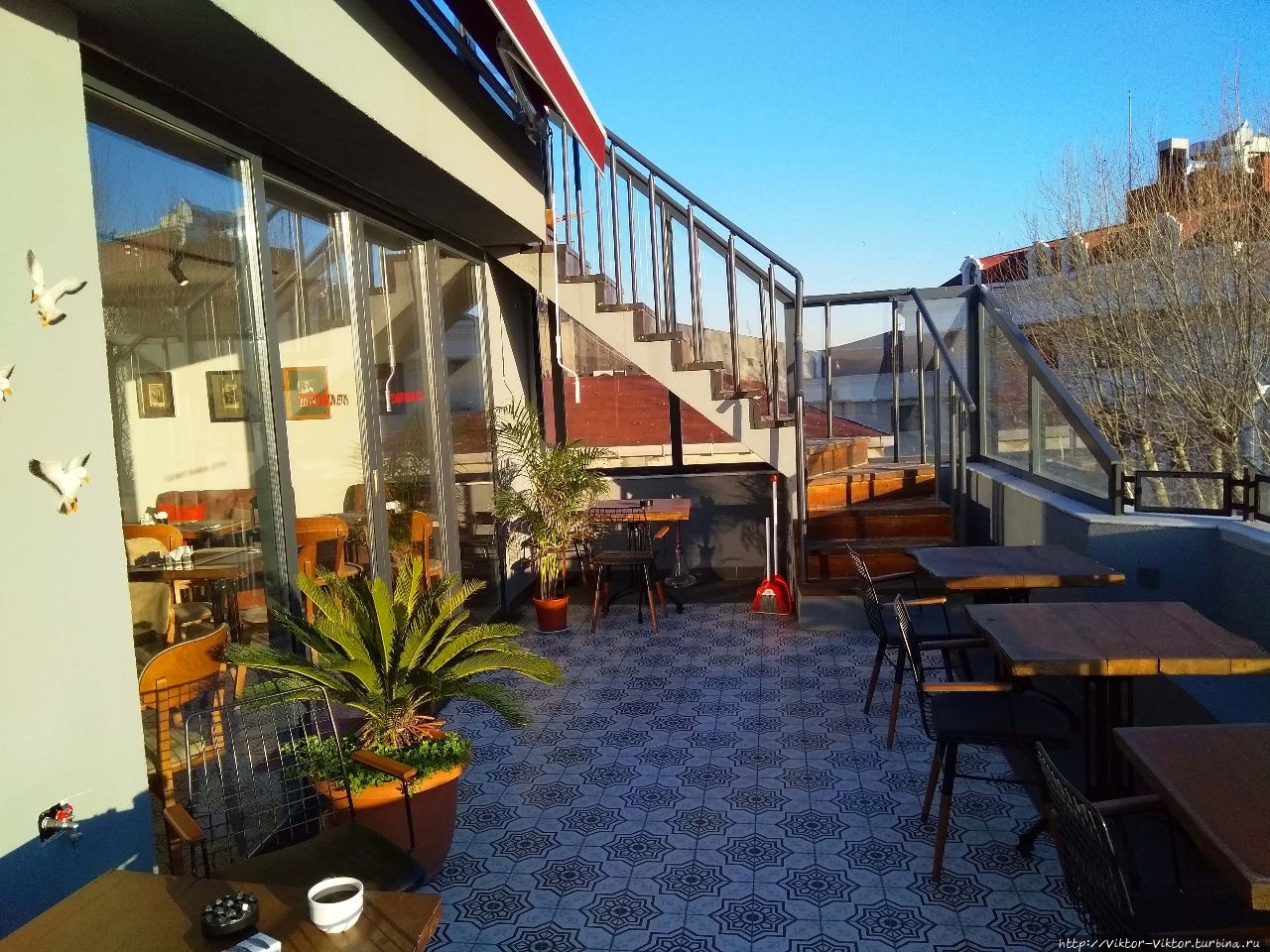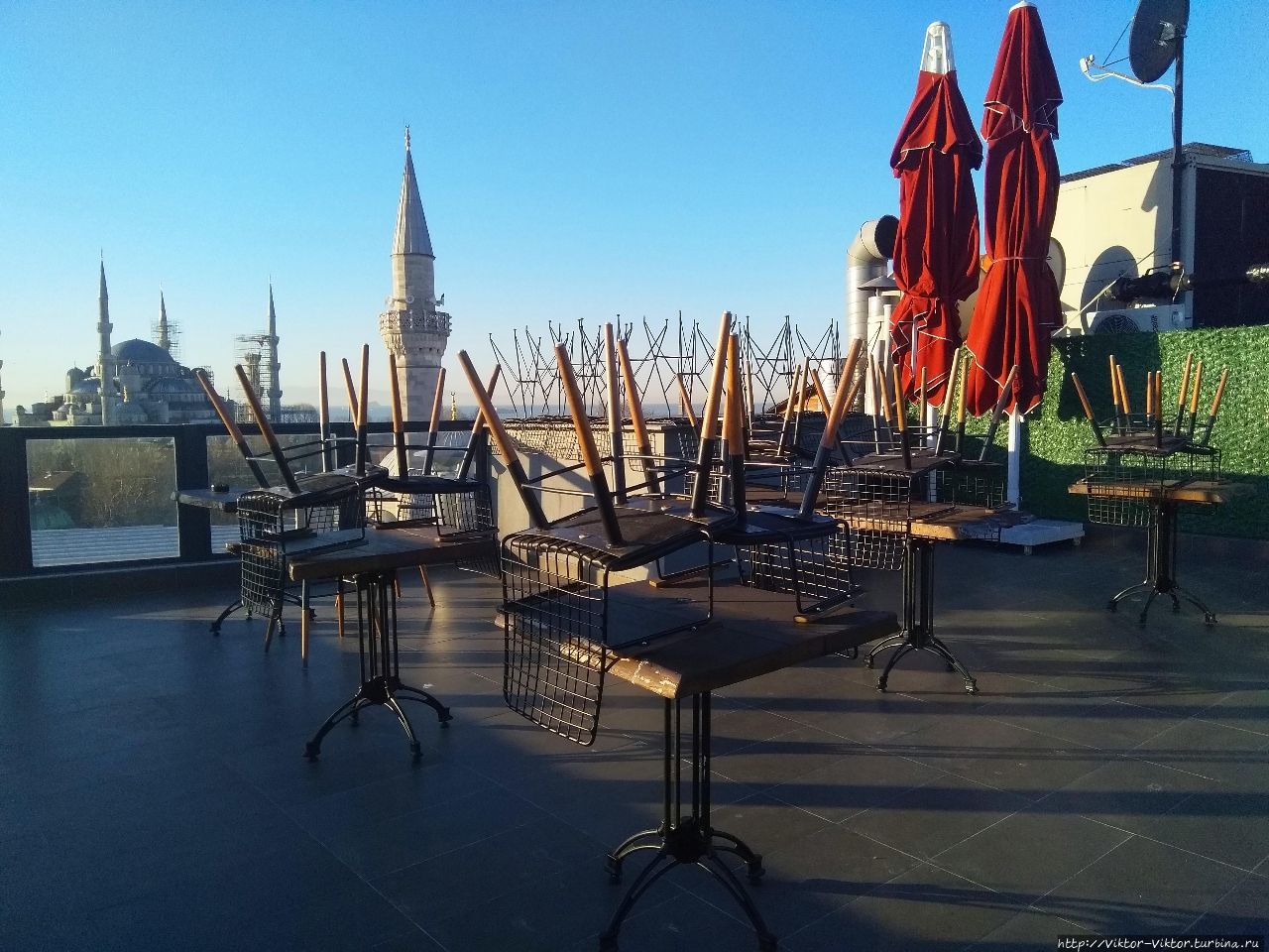 С террасы ресторана мы любовались восходами солнца над Стамбулом под утренний кофе, а с террасы на крыше открывался замечательный вид на пролив Босфор.