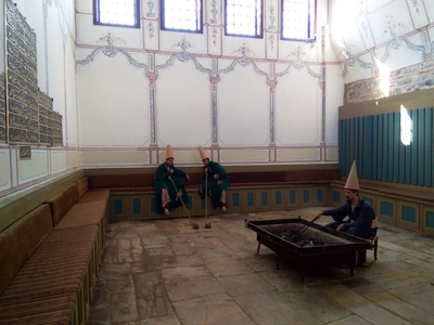 Получить статус гюзде можно было и во время проведения смотрин в Тронном зале или зале Приемов, куда султан для развлечения приглашал обитательниц гарема. В такие дни там собирался весь гарем, услаждая повелителя музыкой, танцами и театром теней. Красота множества женщин, их шелковые и атласные наряды, всевозможные ювелирные украшения, богатая мебель, яркое освещение, молчаливые ряды черных евнухов и, наконец, сам султан, сидящий на троне в алом отороченном соболями кафтане, с кинжалом, усыпанным бриллиантами, с закрепленной на тюрбане алмазной и рубиновой брошью-эгретом, стоящий рядом с ним кальян, тоже весь в драгоценных камнях, исходящее от небольших жаровен благовоние и аромат кофе – вот шанс стать гюзде, привлечь внимание султана игрой на музыкальных инструментах, сладострастной песней, танцем живота и другими двусмысленным танцевальными телодвижениям.
