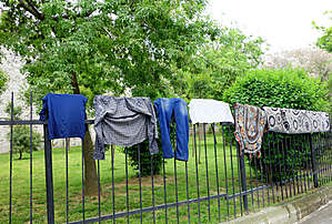 На ограде сохнут чьи-то пожитки.