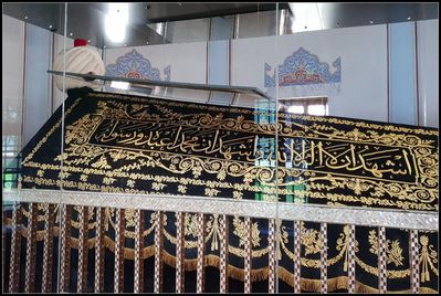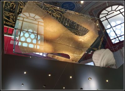 Над гробом лежит кафтан султана, который можно разглядеть в висящем на потолке зеркале.