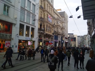 Многочисленные гости и жители Стамбула на улице Истикляль