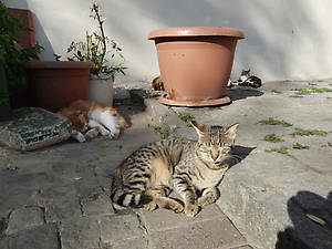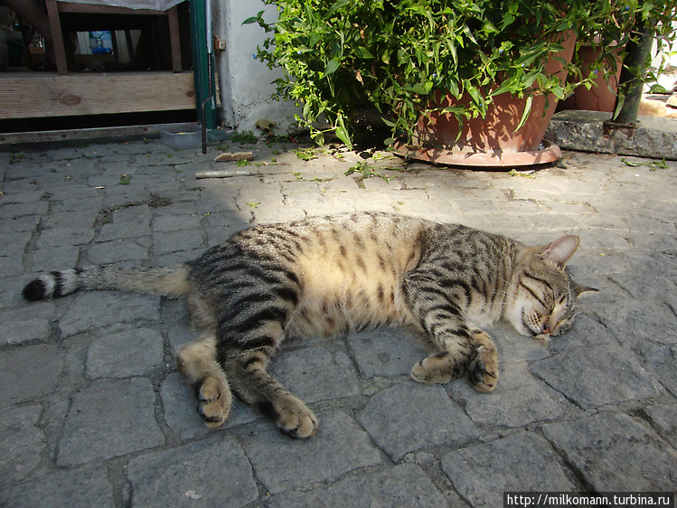 а это кормление котов местным лакомством, печеной картошкой по имени кумпур. Картошку разрезают пополам и внутрь кладут гору всякой снеди: оливки, сосиски, соусы, кукурузу, сыр и прочее