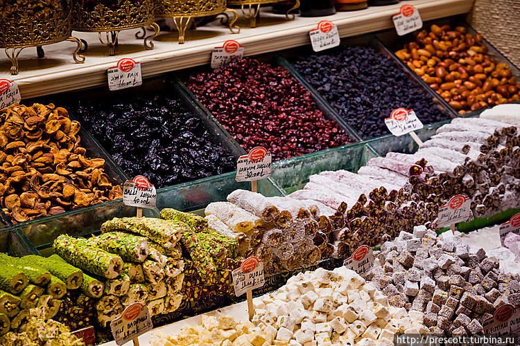 Какое-то нереальное кол-во всевозможных турецких сладостей. Пахлава, рахат-лукум, халва и т.д...