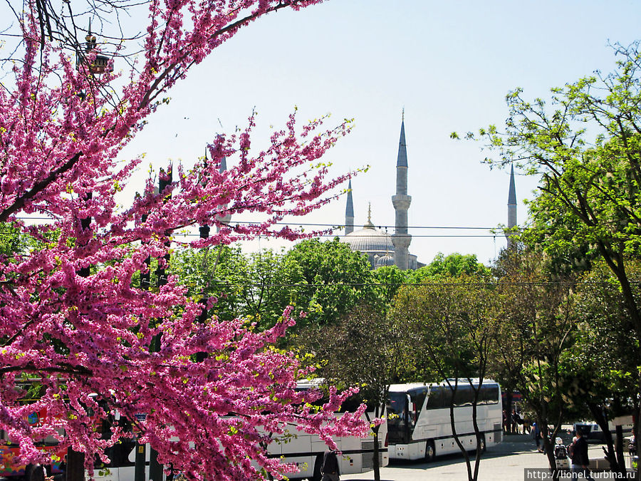 ...А вот и площадь Султанахмет, пространство между Голубой Мечетью и Айя-Софией. заполненное туристами и торговцами. Очень интересные сиреневые деревья, не однажды попавшие в объектив моего фотоаппарата. Двухэтажные автобусы, ждущие своих пассажиров-туристов (об автобусах этих разговор отдельный..) Прикосновение к Истории города Царьграда-Константинополя-Истанбула...