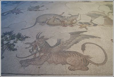 Мозаики в музее меня удивили. И дело здесь не только в тонкости исполнения. На картинах почти нет изображения привычных в таких случаях богов и богинь, героев мифов или портретов императоров и патрициев. Мозаики содержат в основном бытовые сцены, а также сцены охотящихся хищников. При этом некоторые из них очень реалистичны и анатомически точны.