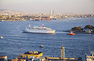 Оглядевшись по сторонам, я увидел широкую реку, пароходы и змейку очереди на один из них. Тут я быстро вспомнил карту Стамбула, рассказы блоггеров и друзей и сразу же понял, где нахожусь. Конечно же, это пролив Золотой Рог! Чтобы убедиться в своем предположении, я подошел к очереди на пароход и коротко и ясно спросил “Султанахмед?” “Да-да, Султанахмед”, – ответил мне турок. Я приобрел билет за 2 лиры и уверенным шагом зашел на палубу, тут же заняв удобное место у борта. Ждать пришлось недолго – мне повезло, я оказался на пароходе незадолго до его отплытия. Пароход поразил комфортом. Буквально через минуту мимо прошел турок с подносом с горячим чаем и сладостями, ненавязчиво предлагая всем желающим угоститься. На пароходе было удобно и достаточно комфортно, людей было много, но не было давки и конфликтных ситуаций, пассажиры спокойно и аккуратно проходили внутрь, занимая места. На борту парохода также оказался чистый туалет! Но, кажется, для окружающих это было в порядке вещей – удивлялся всему я один. Впрочем, я не только радовался комфорту на борту парохода, но и достаточно быстро обратил внимание на красоту вокруг. А посмотреть было на что! Это и красивые дома на набережной, и минареты мечетей, и огромные пароходы, и маленькие катера и яхты, ослепительно синее небо и диск солнца в зените! Все это было в непрекращающемся ни на секунду движении, передо мной открылось большое пространство, заполненное множеством кораблей разной величины, и огромный город вдалеке! Вот в этот самый момент я впервые почувствовал невероятную энергетику Стамбула!