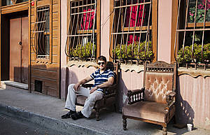 Вкусно пообедав, я вновь ощутил чувство комфорта и удовольствия от отдыха, несмотря на то, что, по сути, он только начинался! Что-то подобное я испытывал во время моих путешествий в Чехии, Австрии и Испании и, честно признаться, от Стамбула не ожидал! Мои представления о Турции и Стамбуле изменились. Мысли о комфорте после вкусного обеда полностью отключили мое сознание от намеченного плана – сделать хороший репортаж о Стамбуле. В итоге, каюсь, я забыл сделать фото улицы, где расположено это кафе и его фасад. Но я примерно запомнил место, где оно находится, и его можно будет узнать также по характерным рисункам на стенах :)
