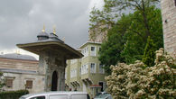 Осмотрев второй двор, направляемся к Баб-юс-Саадет (Ворота Блаженства). Каково?! Уже приготовились его ощутить? Но тут вам сообщают второе название ворот — Ворота Аудиенций. Как скучно! Ну, и тогда как вам понравится третье название — Ворота Белых Евнухов! Это совсем интригующе! Тем более, что, как вы узнаете от аудиогида, именно здесь происходили самые волнующие события Османской империи. Здесь объявляли о вступление в управление государством очередного султана. Сюда выносили тела султанов, убитых в результате очередных переворотов. Сюда выбрасывали великих визирей (премьер-министров) на растерзание разъяренным янычарам. В общем, все страсти османские кипели именно здесь.