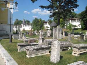 На входе в монастырь есть объявление, что фотографировать можно всё, но не во время богослужений. Вид от входа.