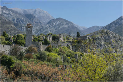 В это место, столь любимое фотографами, мы никак не могли не приехать из основного пункта путешествия — города Бара на побережье. Собственно, оба эти места — это Бар. Но только здесь — старая, разрушенная землетрясением часть города, которая находится в отдалении у гор. Старый Бар даже именуют черногорскими помпеями. Из-за участи, постигшей эти места. Мы были в Черногории в апреле — в самый расцвет всей природы. И понятно, почему в этих местах так любят проводить фото сессии. Природа здесь — чудесная...Но коснемся немного истории этого места. Еще в 3 веке до нашей эры сюда — в места проживания энгелейцев, пожаловали римляне и основали здесь крепость — как раз на месте разрушенного землетрясением Старого Бара. Сегодня сюда едут туристы отовсюду. Тем более, что сам Бар — современный городок на побережье, привлекает многих отдыхающих своими пляжами. А ведь чем-то хочется разнообразить ленивый пляжный отдых. Нас это совсем не касается. Мы давно забыли, когда просто лежали где-то в какой-то стране. Скорее — колесили вдоль и поперек... Так и с Черногорией... После римлян в эти земли пожаловали аваро-славянские племена. Здесь было основано государство со странным названием Дукля. Позже оно называлось — Зета. Было это уже в 7 веке. В 9-10 веках эта местность перешла под власть Византии. Вообще, история Черногорских городов — сплошные перемещения из одних рук в другие. Такие лакомые кусочки — в таких красивых местах... да еще на Адриатике... Вот наглядный пример — частичка природы черногорской. В этой стране, действительно так легко дышится и такая аура от всей природы идет. Надо только попасть сюда в нужное время. И чтобы было не так жарко... В 9 веке уже появилось странное название города — Антибарис. Объясняется все просто — на другой стороне Адриатики как раз находился и сегодня находится итальянский городок Бари. Вот эти камешки — многое повидали — кто только по ним не ходил... В 1042 году под началом князя Стефана Войислава здесь образовалось славянское государство Дукля. Цветущие сады в апреле — во всех городах Черногории — это нечто. Глаз радует все... В те времена здесь мощным было влияние церкви. Впрочем, церковь в чести в Черногории и поныне. Бар стал архиепископством, объединив земли и церкви Боснии, Травунии и Сербии. Уже на входе в современную часть, предваряющую прогулку по развалинам, вас встречают гостеприимные таверны. Туристов здесь ждут... Такую картинку видишь в Черногории повсеместно. Все время мне вспоминается улица с очень образным названием Устанишка. В этом названии — вся суть черногорской жизни на горах. Многие села здесь раскинулись в предгорьях. И, действительно, устанешь, пока дойдешь до своего дома... Но что интересно — эти живописные места все время переходили из рук в руки. В конце 12 века Бар стал частью государства сербской династии Неманичей. Вот мы уже гуляем по живописным развалинам... В 14 веке в Баре правила династия Балшичей. правители Балча третий и Елена обозначили Бар, как свою столицу. Их земли простирались в сторону Скадарского озера. На это сказочно красивое озеро мы еще попадем чуть позже, когда поедем в сторону Подгорицы мимо Вирпазара. А пока — любуемся красотами развалин. Честно говоря, я не люблю развалины. Особенно какие-нибудь греческие, в общем, античные. скучно мне становится серди них. Но тут — столь