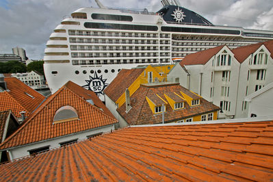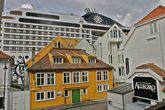 Чуть дальше начинаешь представлять себя эдаким норвежским Карлсоном, который с высоты черепичных крыш, взгромоздившихся на холме Вальберг домиков, смотрит на порт и заплывший в него современный небоскреб ). Правильно называть его конечно по-норвежски "Карлсен"...