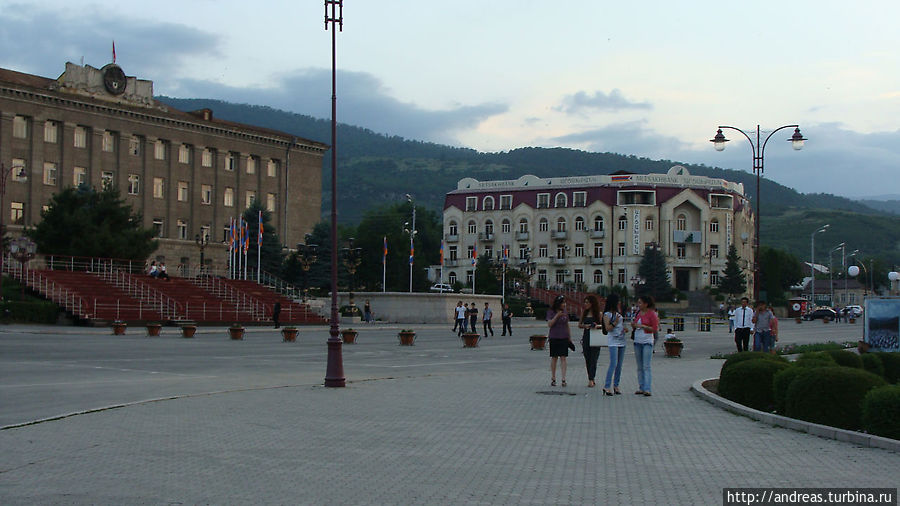 Приехали в Степанакерт — столицу НКР, город с населением около 53 000 человек. Выглядит современно и красиво, оживлённый и многолюдный в центре.