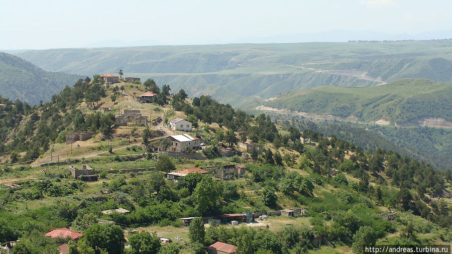 По пути таксист охотно останавливался нам в интересных местах, чтобы мы могли посмотреть и пофотографировать. Запомнился Бердзор, бывший Лачин, город, находящийся в полоске земли, отвоёванной армянами у азербайджанцев. Именно здесь шли ожесточенные бои, которые завершились осенью 1992 года освобождением Лачинского коридора, позволившего наладить беспрерывную коммуникацию между НКР и Арменией. Мы посетили братскую могилу, на которой написаны имена захороненных в ней армян.