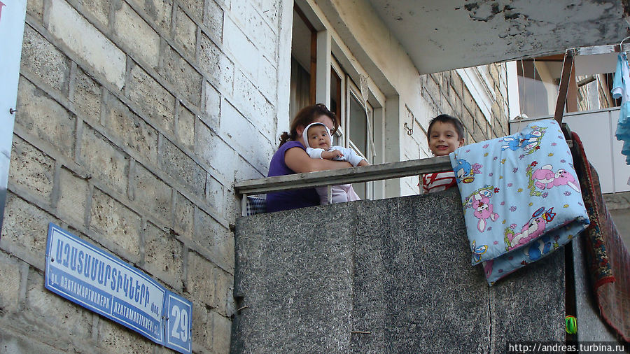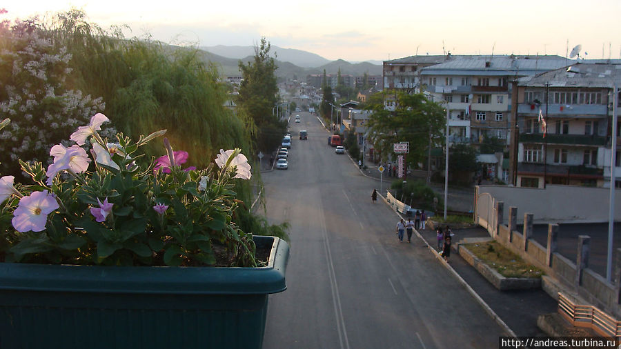 На автовокзале сразу появились незванные помощники. Таксисты предлагали свои услуги. Гамлет, охранник автовокзала, тут же начал искать нам дешёвую квартиру и предлагать оставить у него рюкзаки. Откуда-то нарисовался Аран, молодой парень в галстуке и белой рубашке, представившийся гидом и предложивший бесплатно показать нам город. Потом целый вечер ходил за нами по городу, временами надоедая. Но всё же пользы от Арана было больше: рассказал про город, нашёл нам квартиру за 5 000 драм возле автовокзала. Только меня почему-то боялся, потому что я задавал много вопросов. Часто спрашивал: "вы не записываете на диктофон мой ответ?" И на всякий случай шёл от меня в нескольких метрах, посматривая на мои руки.