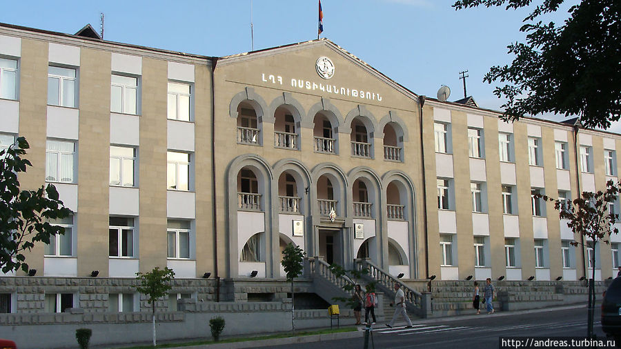 Мы думали, как успеть до отправления автобуса в 10-00 получить аккредитационную карту в МИД НКР, которое начинает работу в 9-00? А тут вовремя подвернулся добровольный помощник в районе автовокзала, познакомивший нас с таксистом, готовым отвезти в Ереван за 6 000 драм (автобус 5 000 драм). Мы объяснили ситуацию с МИДОМ. Таксист нам в ответ: "Нет проблем. Мой брат заместитель министра иностранных дел НКР. Я вас отвезу в МИД, он поможет, я подожду и поедем в Ереван". Вся процедура заполнения и получения аккредитационной карты заняла 10 минут для всех троих: меня, Святослава и Аруз, которая согласилась ехать с нами на такси.