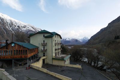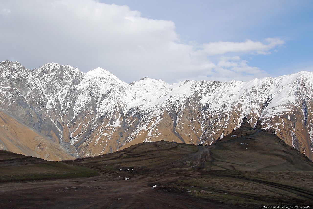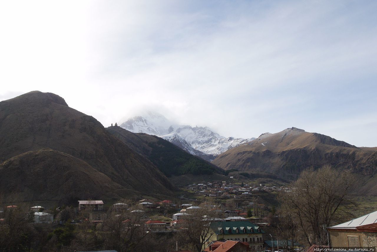 Поездка наша пришлась на конец апреля, и погода пока не спешила баловать теплом. Да ещё и гора Казбег, высотою в 5000 метров, диктует тут свои законы. Местные утверждают, что когда над горой идёт снег, то здесь, у подножия, тепла ждать не стоит.