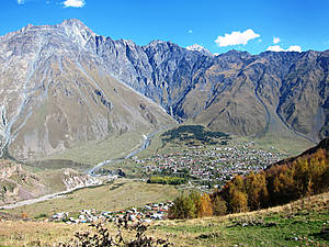 Сны о Грузии. Степанцминда маленькая и круглая, как тарелка, лежит ровненько, как на ладошке, в окружении горных стен. Тоненькая ниточка дороги связывает ее с селом Гергети.