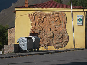 Об историческом прошлом напоминает, находящийся на реставрации, памятник писателю Александру Казбеги