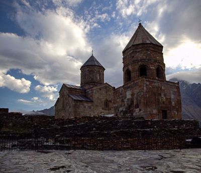 Троицкая церковь в Гергети (Гергетис Цминда Самеба) расположена на высоте 2 170 м у подножья Казбека вдоль Военно-Грузинской дороги в грузинской деревне Гергети на правом берегу Чхери (приток Терека), прямо над посёлком Степанцминда.