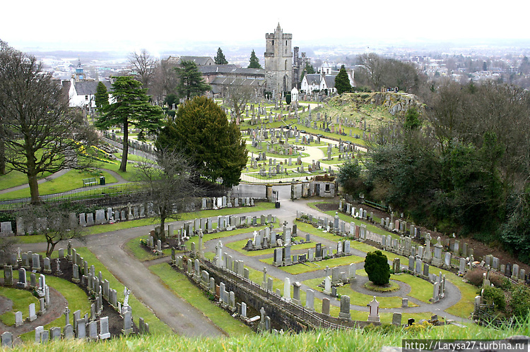Вот и Стерлинг такой — сумрачный... и от времени, как бы вросший в землю. И ещё. Он почти со всех сторон окружён старинными кладбищами.