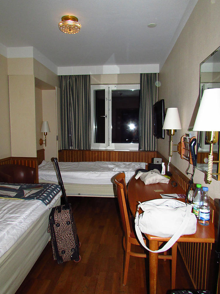 В первую ночь у нас был номер без окна. Чистый, маленький, но есть где развернуться двум девушкам. А в последующие дни мы жили в номере с окном на третьем этаже. Наш номер был замечательно расположен. Из окна открывался вид на парк аттракционов Грена Лунд, остров Юргорден и пароходики, без конца снующие по Балтийскому морю.