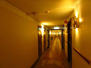 В холле, на первом этаже был небольшой магазинчик. Стойка с прессой, кофе-автоматом, холодильником, где можно было купить бутерброды и салаты и предметы первой необходимости. Цены не особо выше, чем на те же предметы в городе.