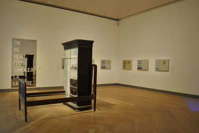 В Moderna museet представлена «Монограмма» (1955-59) Роберта Раушенберга. Это чучело ангорского козла, его морда измазана краской, а на тело надета автомобильная шина. В этом образе Раушенберг видел себя – изгнанника, не разделяющего ценности маскультуры, черпающего пищу в искусстве. Шина же понадобилась, чтобы уравновесить экзотизм козла чем-то предельно функциональным и обыденным. В 50-е годы «Монограмма» олицетворяла современное искусство, а спустя годы стала выражением экологической катастрофы…